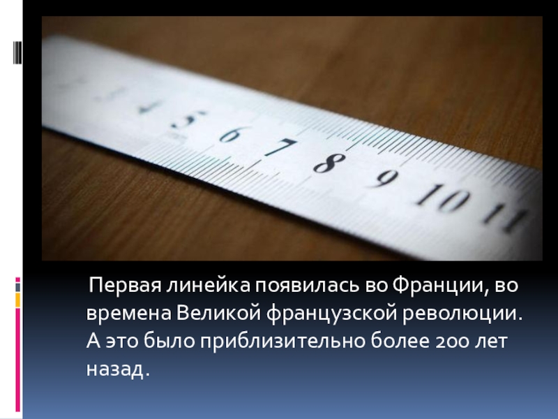Первая линейка появилась во Франции, во времена Великой французской революции. А это было приблизительно более 200 лет назад.