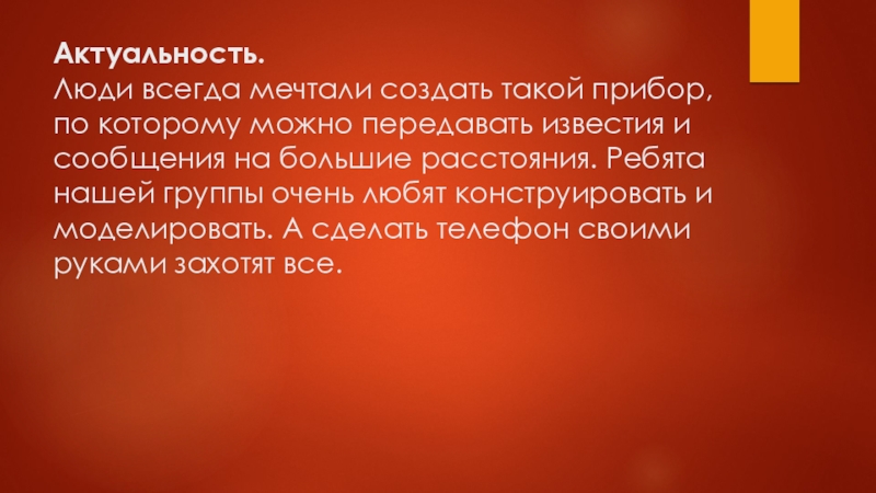 Слайд 5Актуальность. Люди всегда мечтали создать такой прибор, по которому можно передавать известия