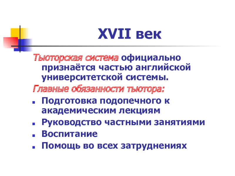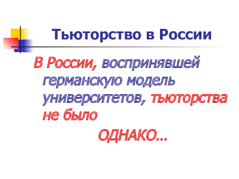 В России, воспринявшей германскую модель университетов, тьюторства не было