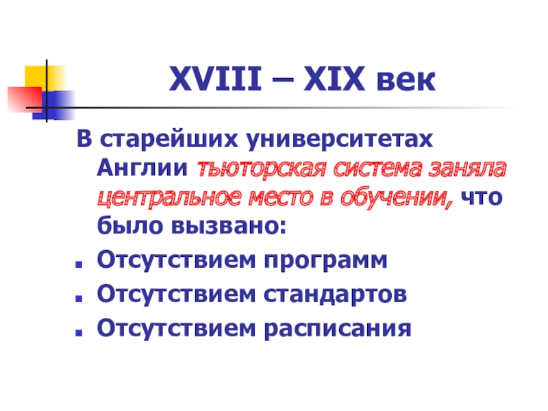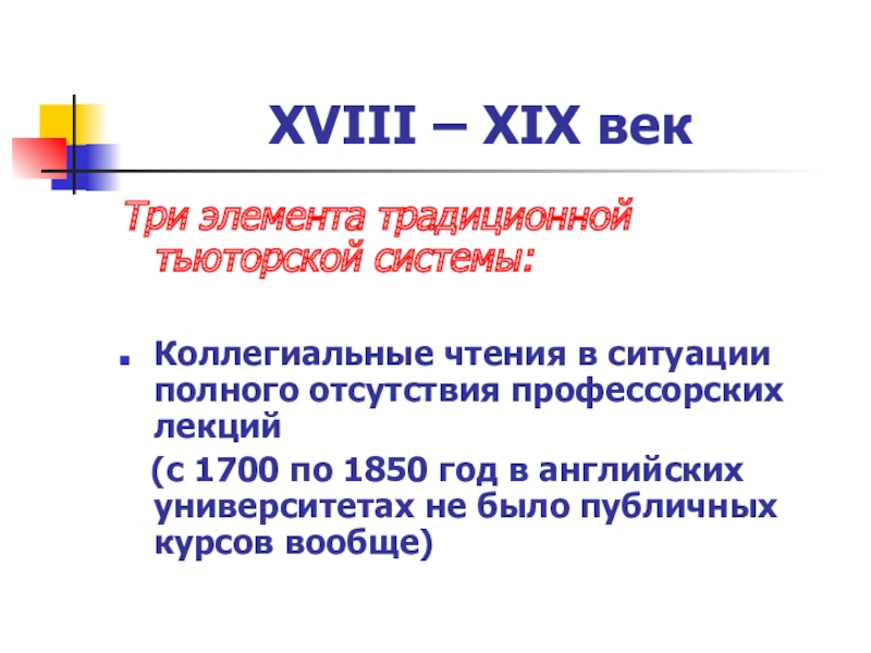 (с 1700 по 1850 год в английских университетах не было публичных курсов вообще)