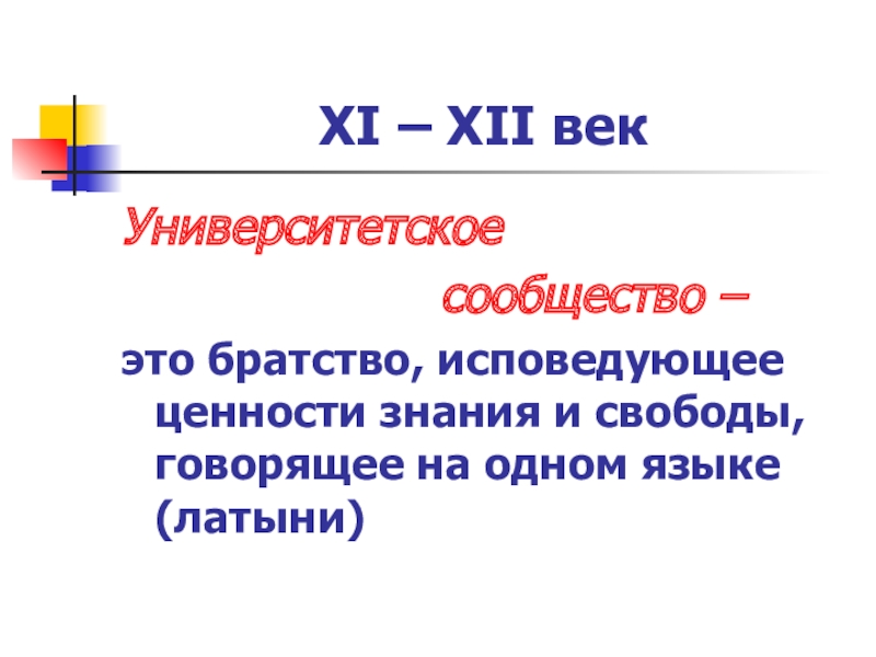 это братство, исповедующее ценности знания и свободы, говорящее на одном языке (латыни)
