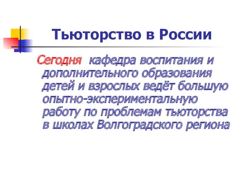 взрослых ведёт большую опытно-экспериментальную работу по проблемам тьюторства в школах Волгоградского региона