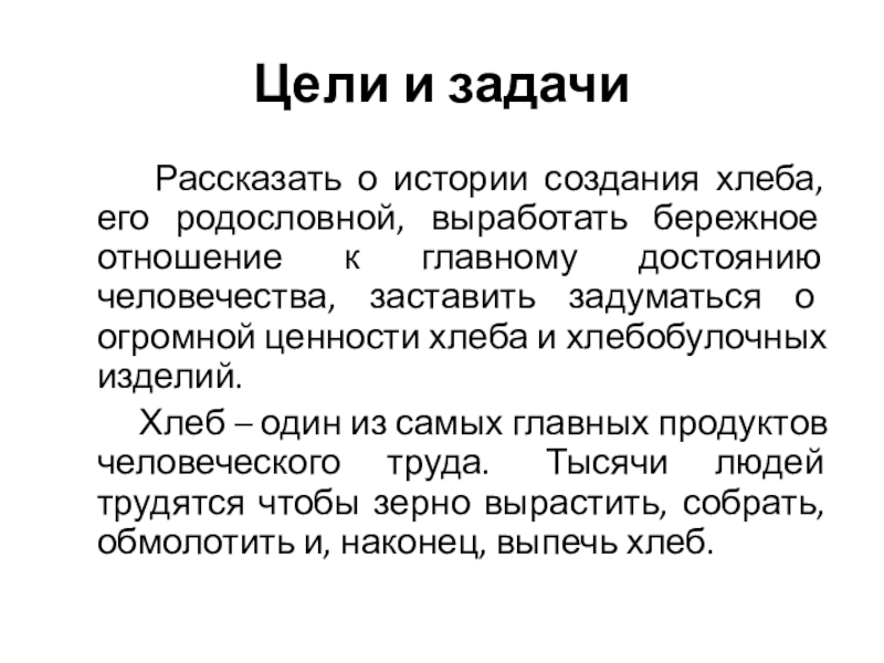 выработать бережное отношение к главному достоянию человечества, заставить задуматься о огромной ценности хлеба и хлебобулочных изделий.