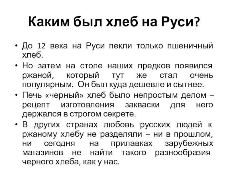 В других странах любовь русских людей к ржаному хлебу не разделяли – ни в прошлом, ни сегодня на прилавках зарубежных магазинов не найти такого разнообразия черного хлеба, как у нас.
