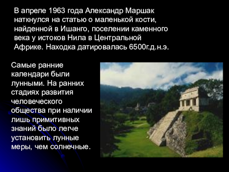 Самые ранние календари были лунными. На ранних стадиях развития человеческого общества при наличии лишь примитивных знаний было легче установить лунные меры, чем солнечные.