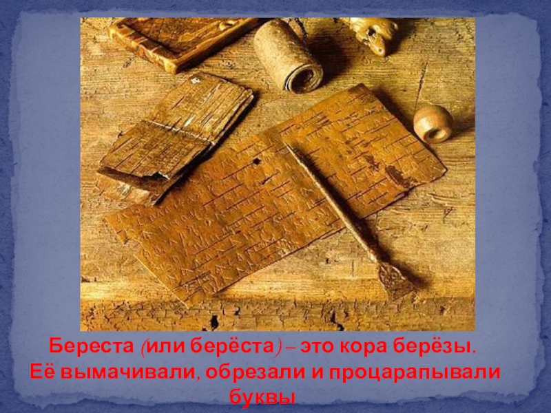 Береста (или берёста) – это кора берёзы. Её вымачивали, обрезали и процарапывали буквы острой палочкой.