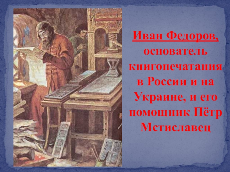 Иван Федоров,основатель книгопечатания в России и на Украине, и его помощник Пётр Мстиславец