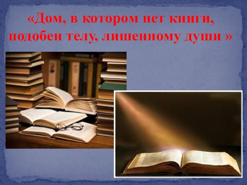 Слайд 25«Дом, в котором нет книги, подобен телу, лишенному души »