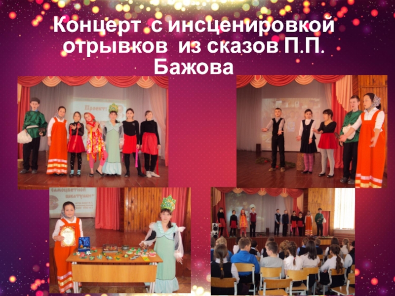 Слайд 11Концерт с инсценировкой отрывков из сказов П.П. Бажова