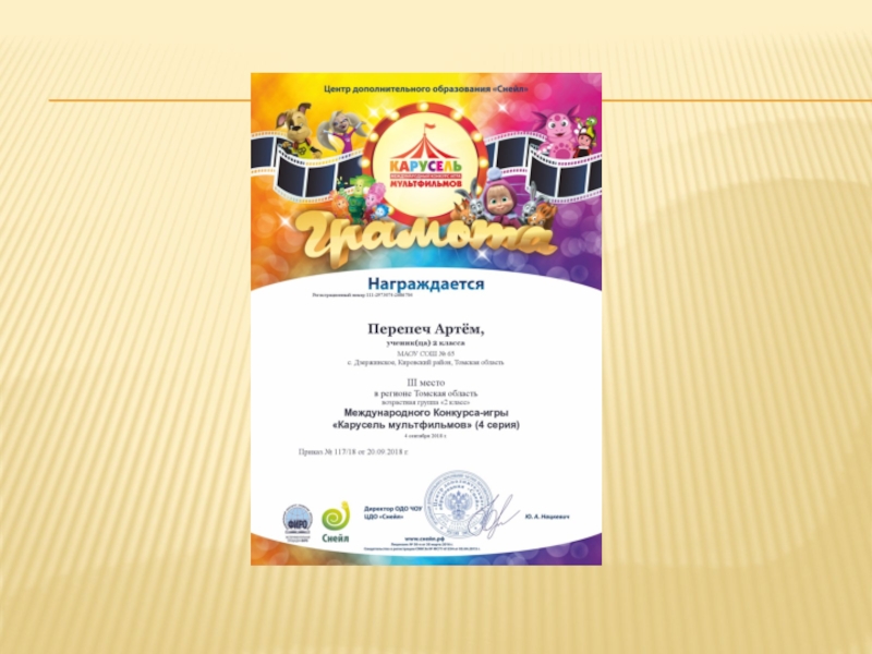 Презентация, доклад Итоги Международного конкурса-игры Карусель мультфильмов