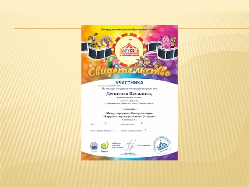 Презентация Итоги Международного конкурса-игры Карусель мультфильмов Детские презентации