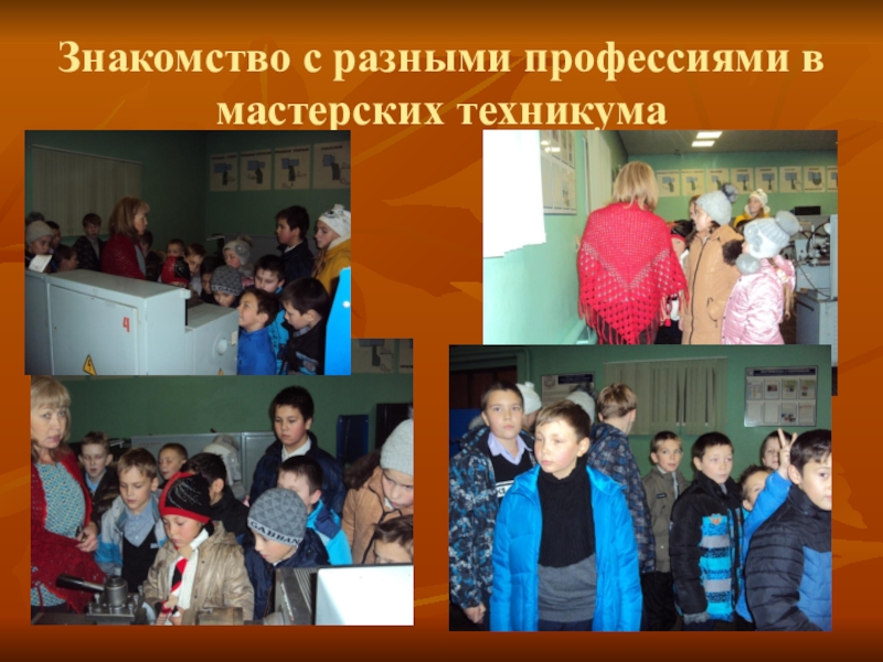 Слайд 8Знакомство с разными профессиями в мастерских техникума
