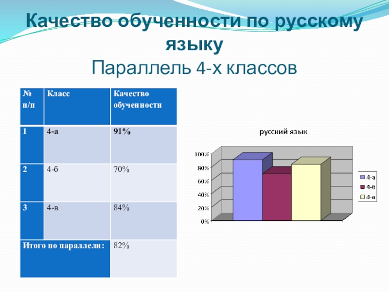 Слайд 8Качество обученности по русскому языку Параллель 4-х классов