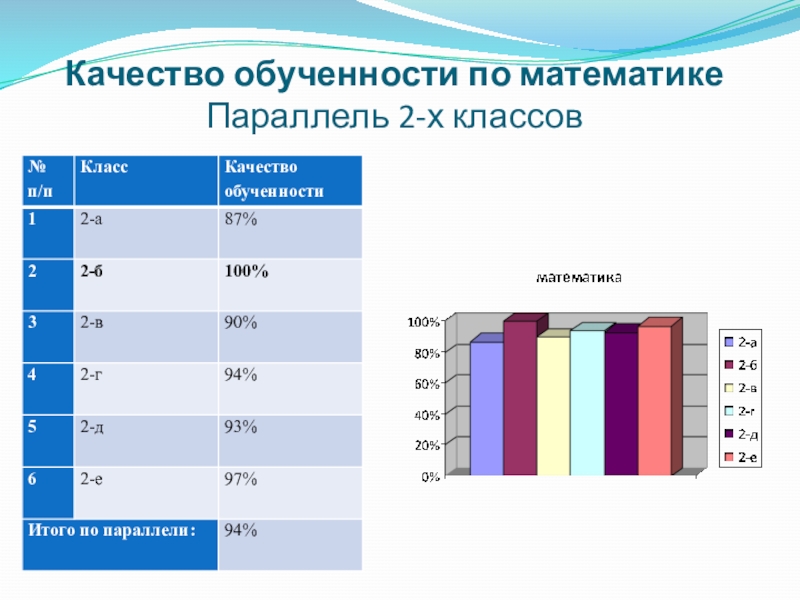 Слайд 9Качество обученности по математике Параллель 2-х классов