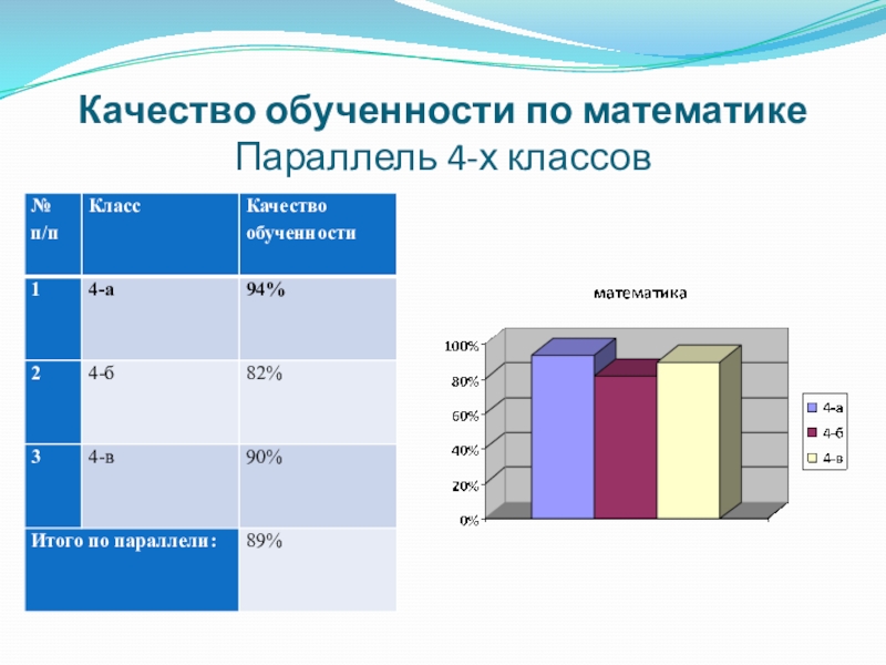 Слайд 11Качество обученности по математике Параллель 4-х классов