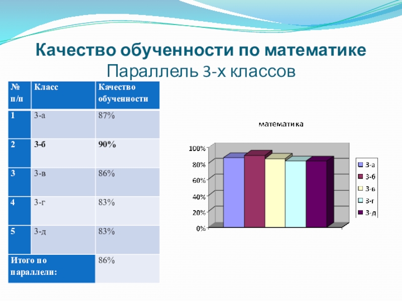Слайд 10Качество обученности по математике Параллель 3-х классов