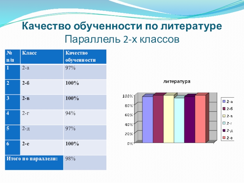 Слайд 12Качество обученности по литературе Параллель 2-х классов