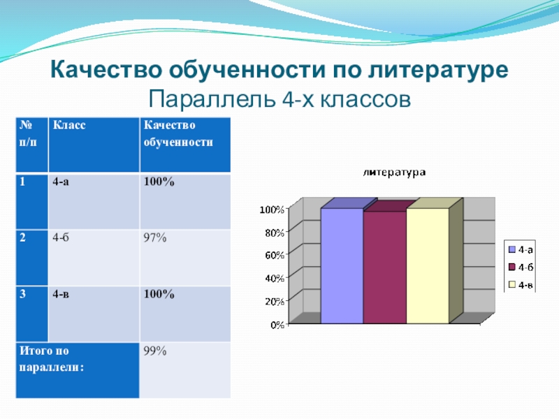 Слайд 14Качество обученности по литературе Параллель 4-х классов