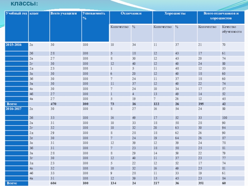 Сравнительный анализ обучения по последним 2-м годам 2-4 классы:
