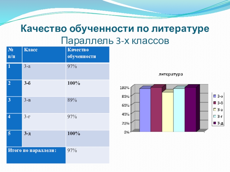 Слайд 13Качество обученности по литературе Параллель 3-х классов