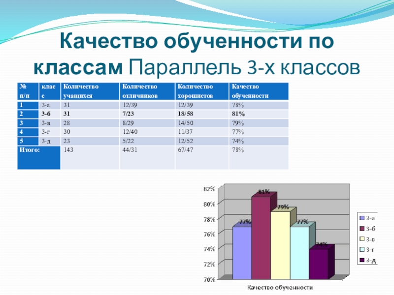 Слайд 4Качество обученности по классам Параллель 3-х классов