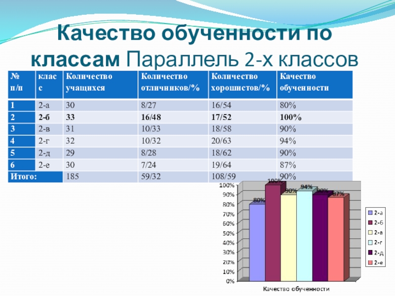 Слайд 3Качество обученности по классам Параллель 2-х классов