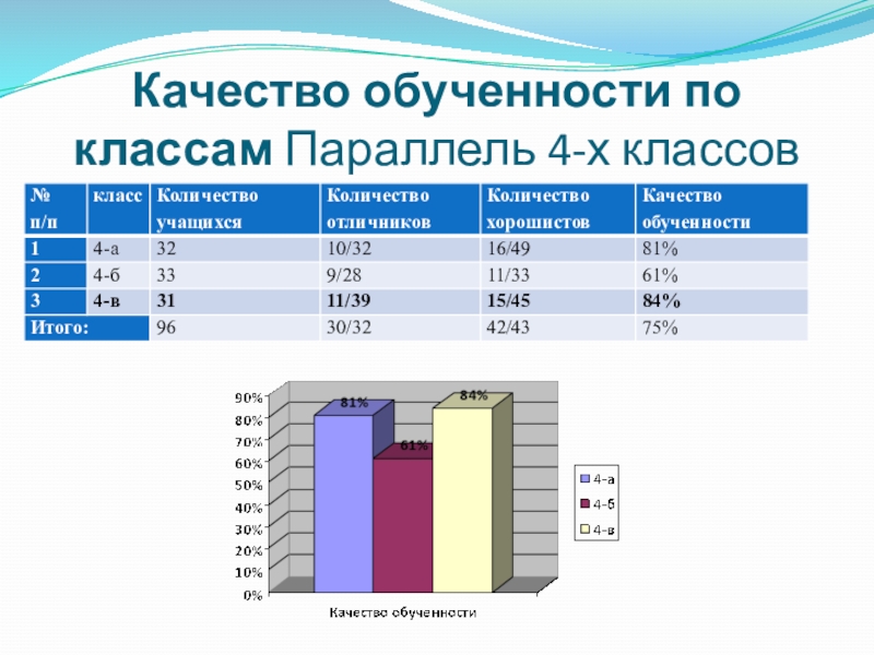 Слайд 5Качество обученности по классам Параллель 4-х классов