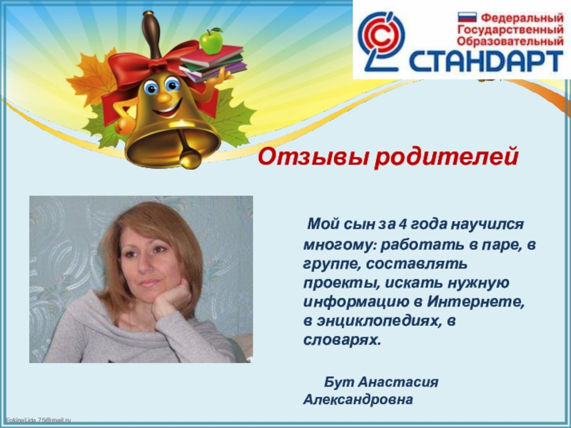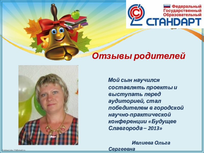Это сайт презентаций, где можно хранить и обмениваться своими презентациями, докладами, проектами, шаблонами в формате PowerPoint с другими пользователями. Мы помогаем школьникам, студентам, учителям, преподавателям хранить и обмениваться учебными материалами.