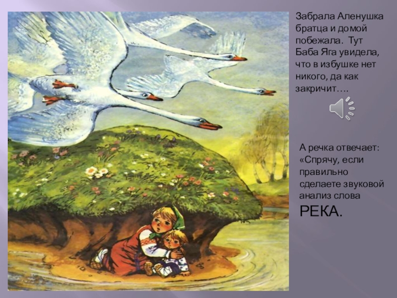 А речка отвечает: «Спрячу, если правильно сделаете звуковой анализ слова РЕКА.