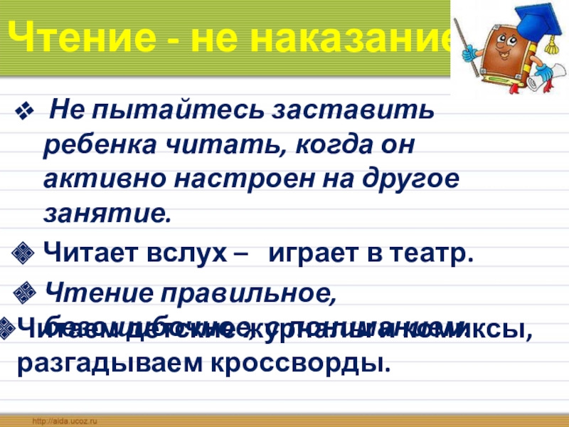 Читаем детские журналы и комиксы, разгадываем кроссворды.