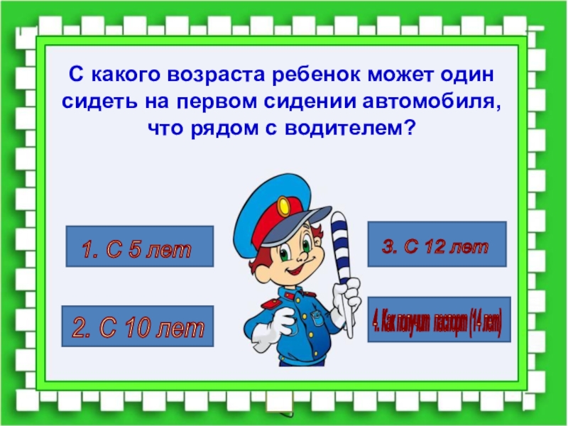 С какого возраста ребенок может один сидеть на первом сидении автомобиля, что рядом с водителем?