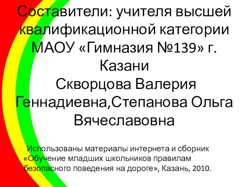 Использованы материалы интернета и сборник «Обучение младших школьников правилам безопасного поведения на дороге», Казань, 2010.