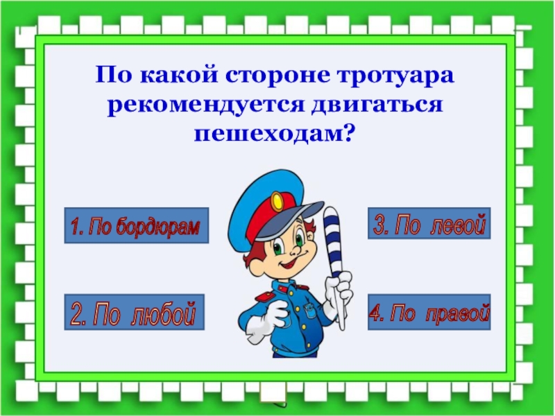 По какой стороне тротуара рекомендуется двигаться пешеходам?
