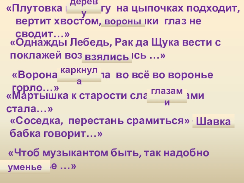 «Однажды Лебедь, Рак да Щука вести с поклажей воз впряглись …»