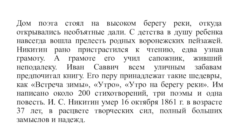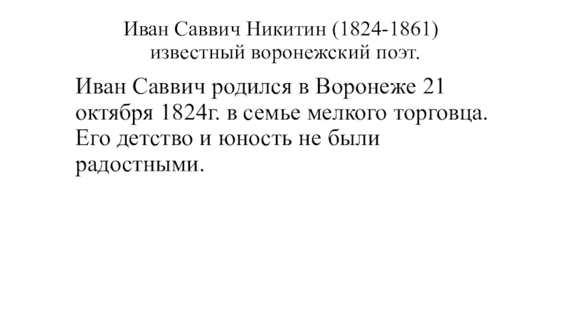 Иван Саввич родился в Воронеже 21 октября 1824г. в семье мелкого торговца. Его детство и юность не были радостными.