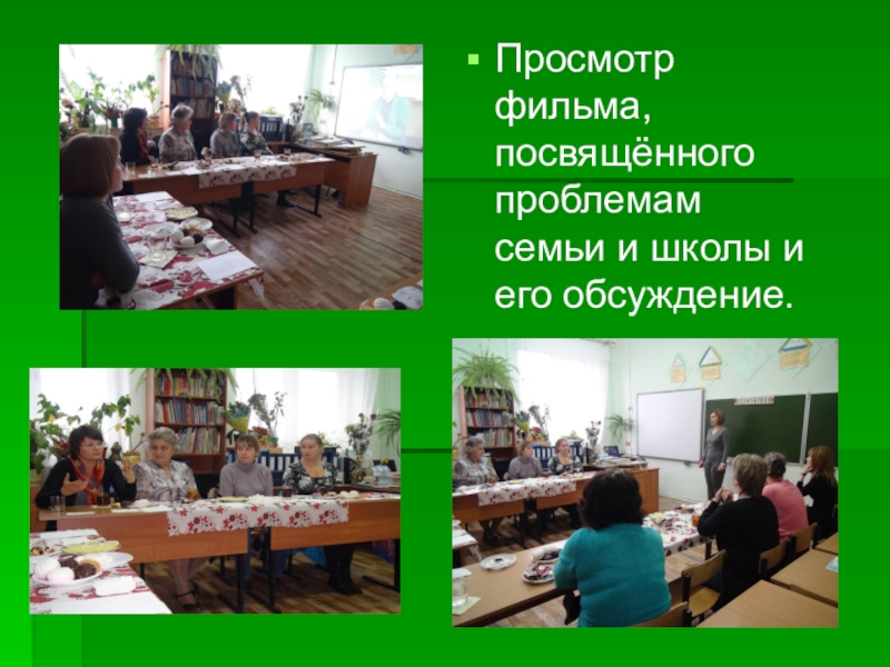 Просмотр фильма, посвящённого проблемам семьи и школы и его обсуждение.