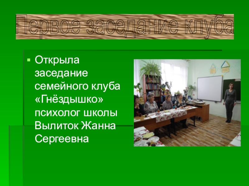 Открыла заседание семейного клуба «Гнёздышко» психолог школы Вылиток Жанна СергеевнаПервое заседание клуба