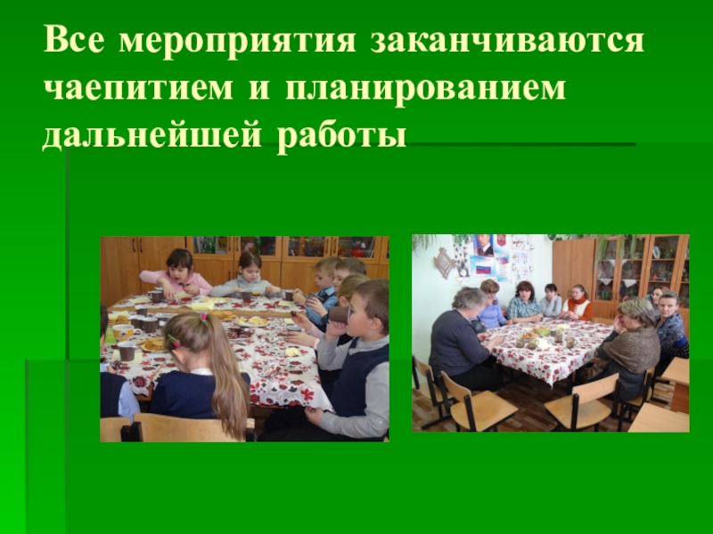 Слайд 11Все мероприятия заканчиваются чаепитием и планированием дальнейшей работы