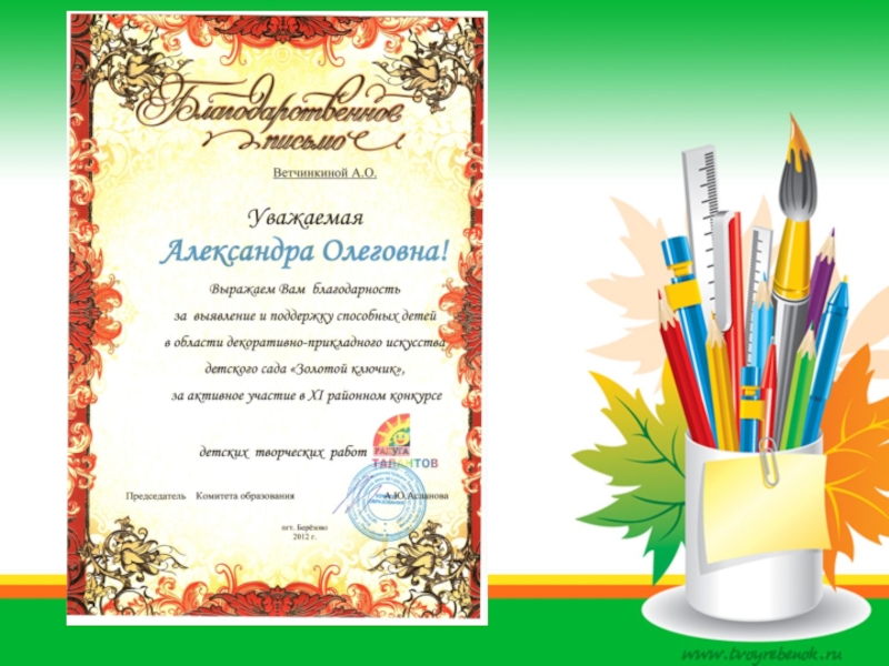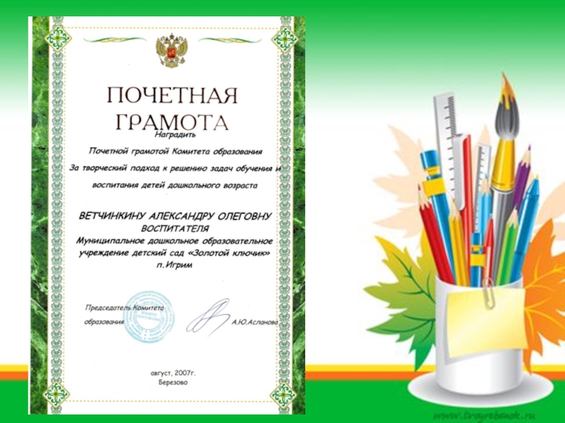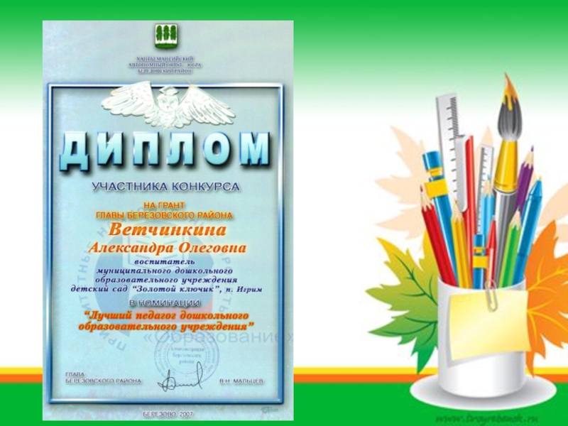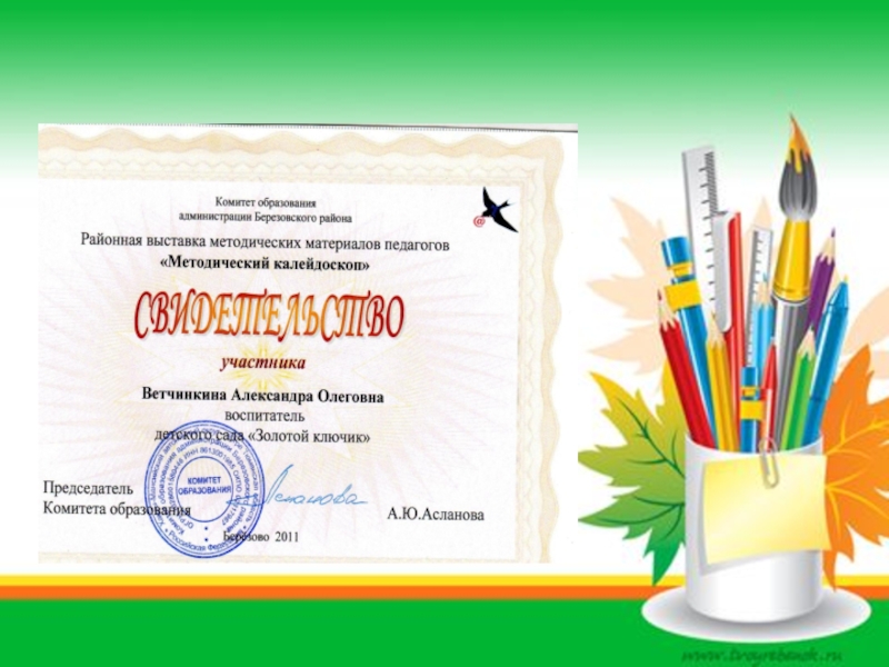 Презентация опыта работы воспитателя МБДОУ «Золотой ключик»ВЕТЧИНКИНОЙ АЛЕКСАНДРЫ ОЛЕГОВНЫ
