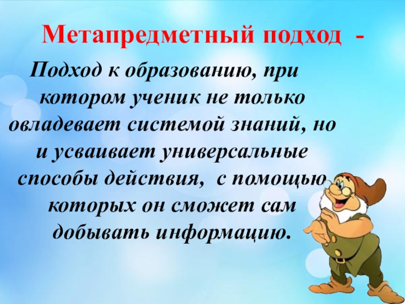 Метапредметный подход - Подход к образованию, при котором ученик не только овладевает системой знаний, но и усваивает