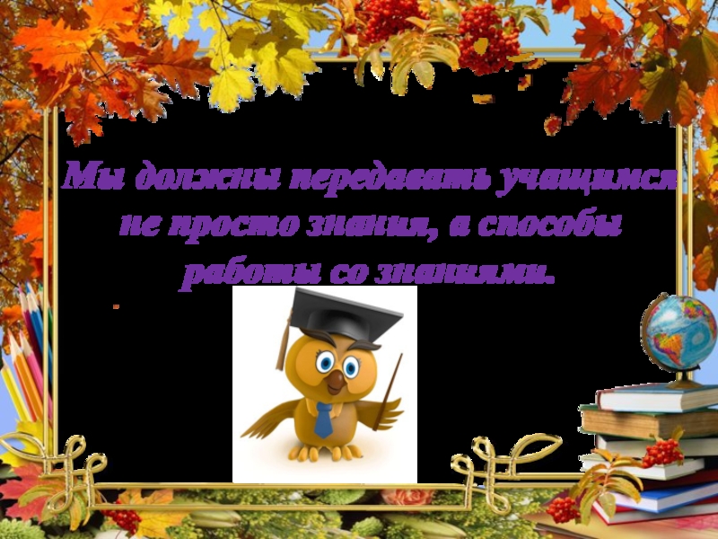 Слайд 9Мы должны передавать учащимся не просто знания, а способы работы со
