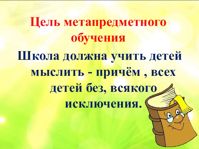 Цель метапредметного обучения Школа должна учить детей мыслить - причём , всех детей без, всякого исключения.