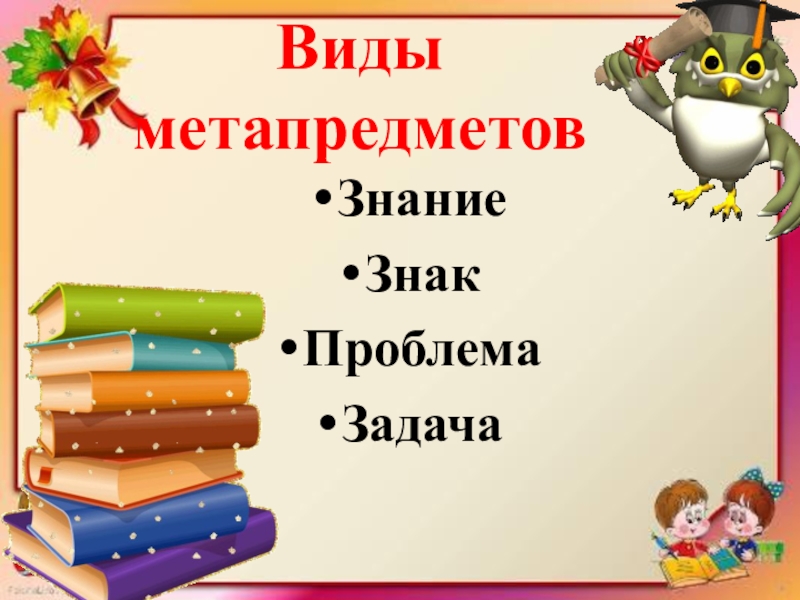 Виды метапредметов ЗнаниеЗнакПроблемаЗадача