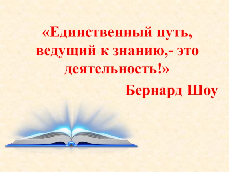 «Единственный путь, ведущий к знанию,- это деятельность!»Бернард Шоу
