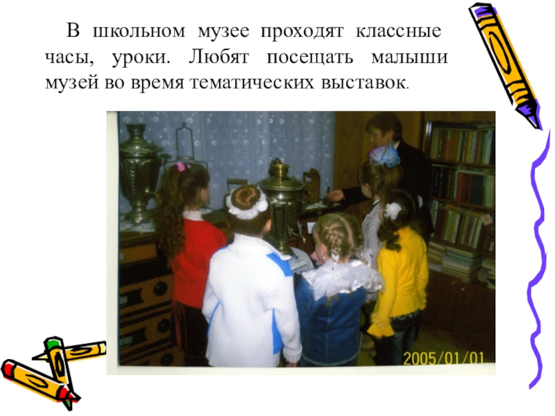 Слайд 10 В школьном музее проходят классные часы, уроки. Любят