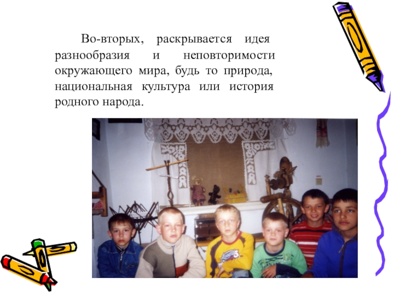 Слайд 3 Во-вторых, раскрывается идея разнообразия и неповторимости окружающего мира, будь