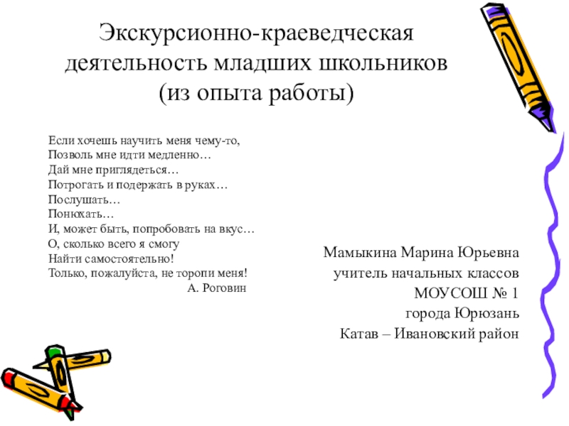 Слайд 1Экскурсионно-краеведческая деятельность младших школьников (из опыта работы)