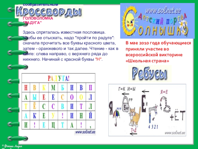 В мае 2010 года обучающиеся приняли участие во всероссийской викторине «Школьная страна»