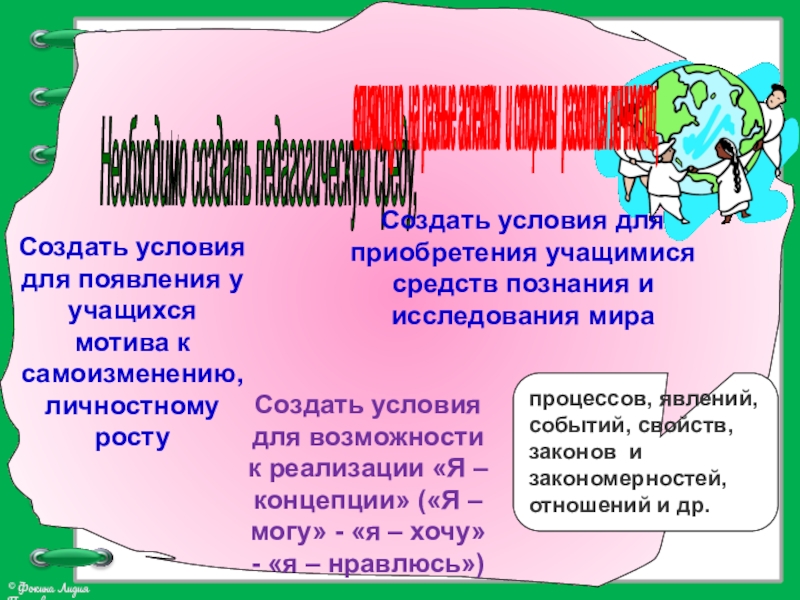 Создать условия для появления у учащихся мотива к самоизменению, личностному росту