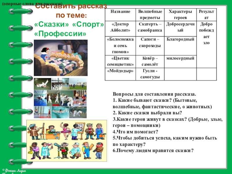 3.Какие герои живут в сказках? (Добрые, злые, герои – помощники)